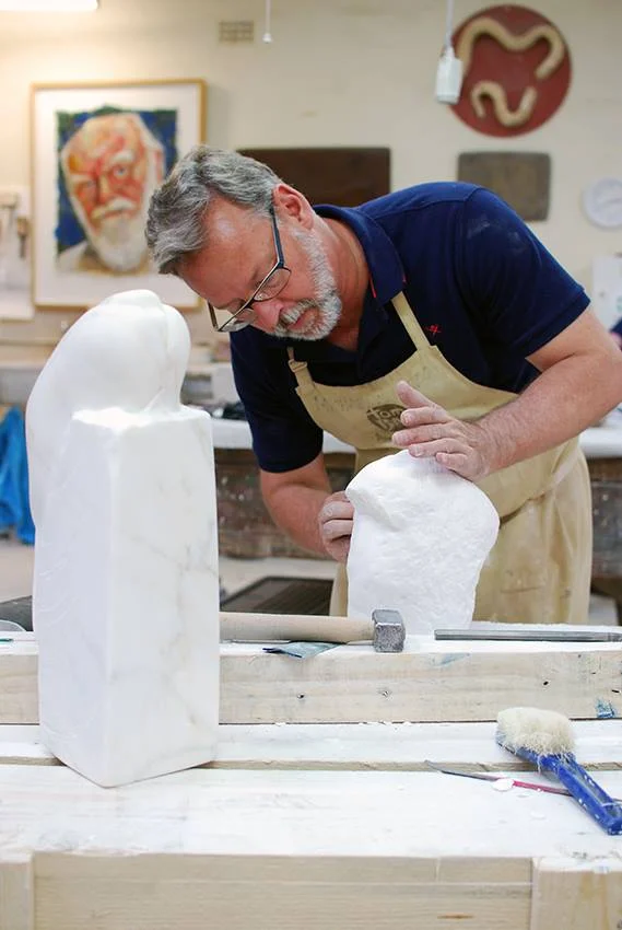 Marble carving at the Tom Bass Sculpture School